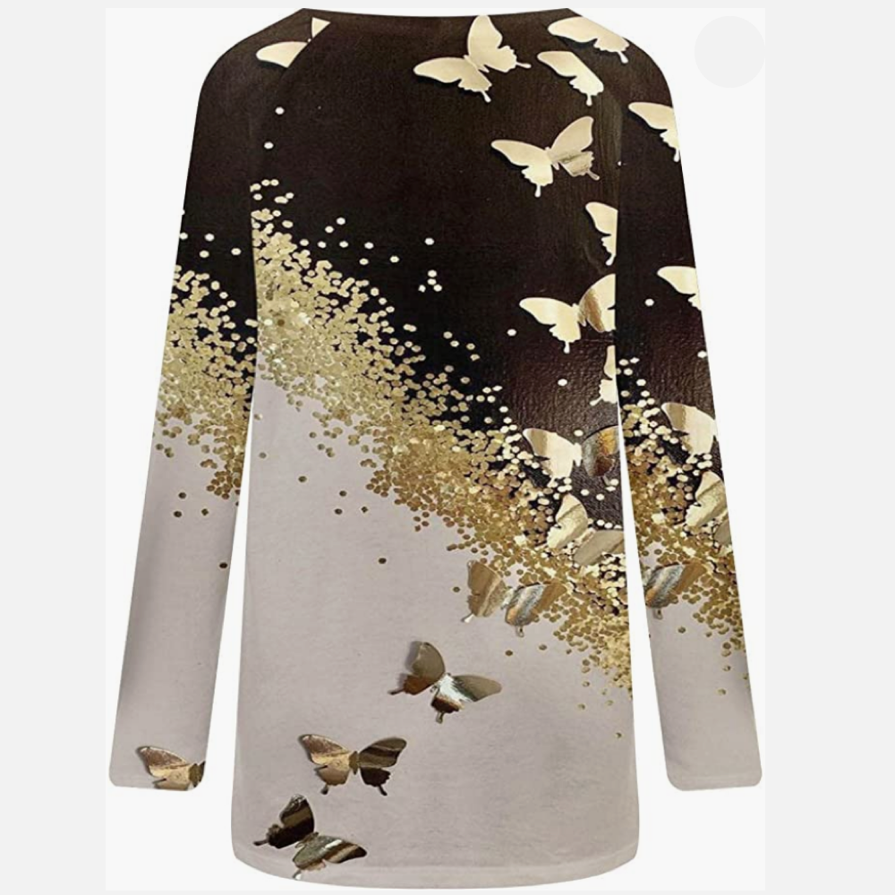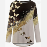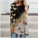 • camisas tipo túnica de manga larga para mujer, blusas bonitas con estampado de mariposa a la moda para mujer, blusa larga cómoda informal de corte holgado para otoño