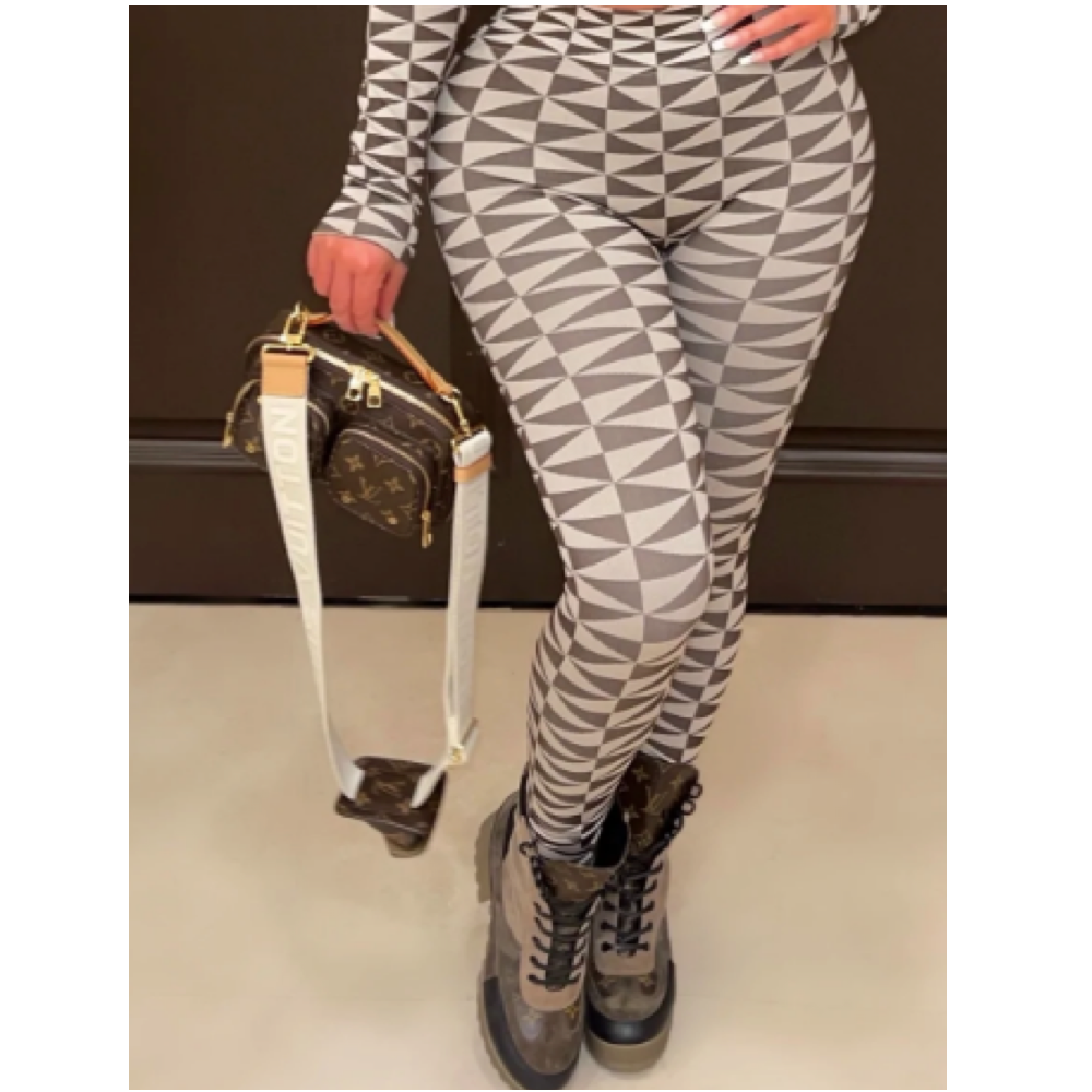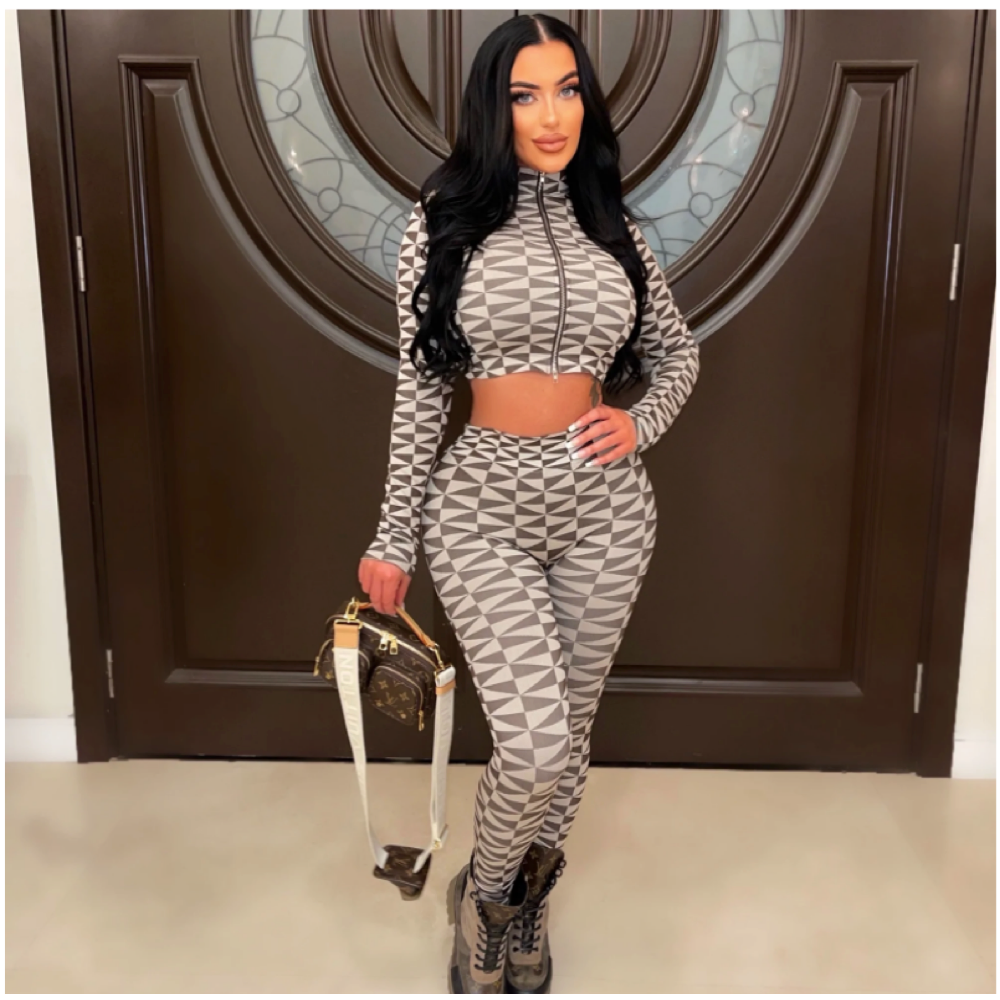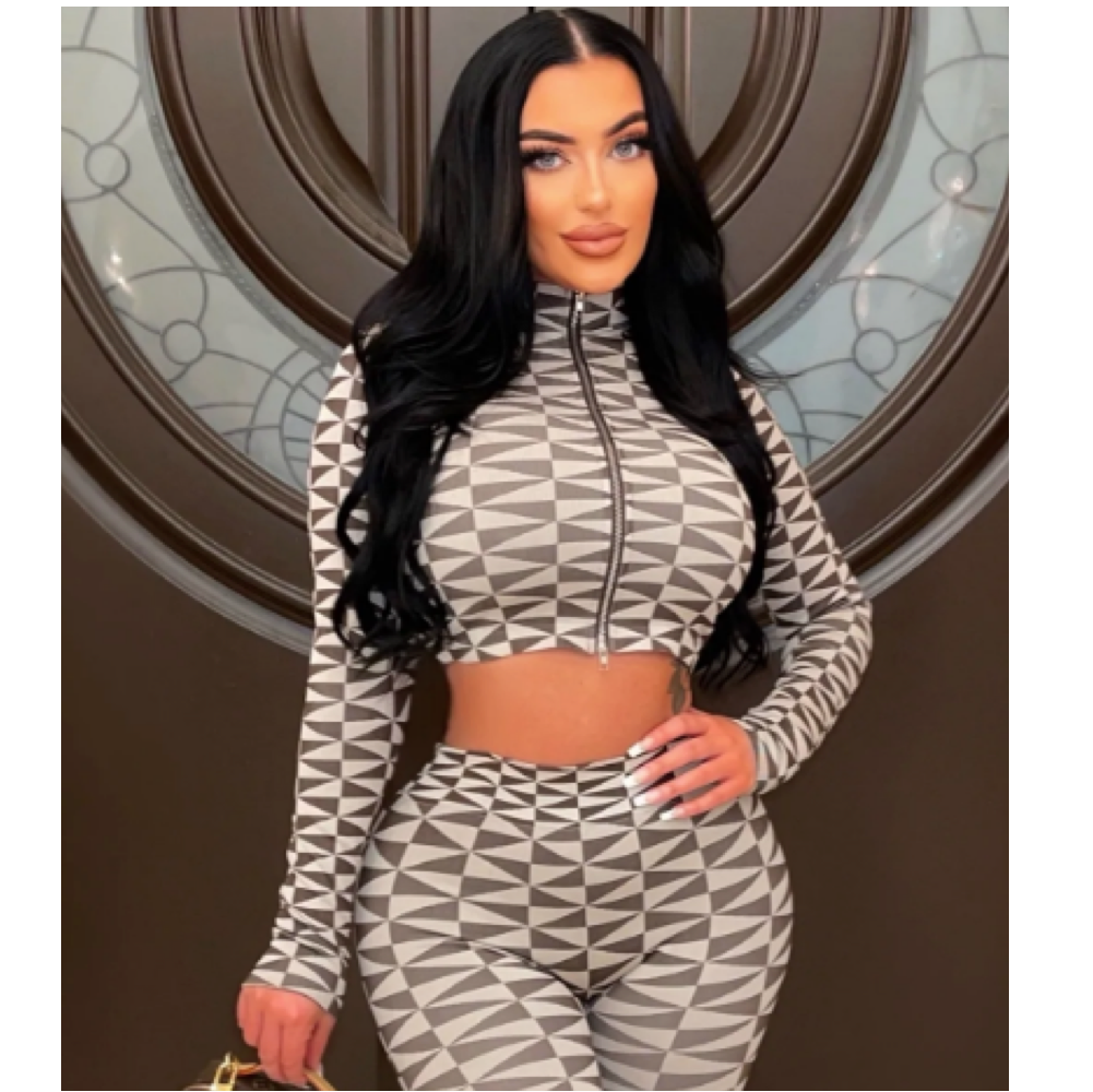 Conjunto de pantalón y top corto con cremallera y estampado geométrico