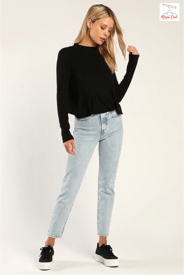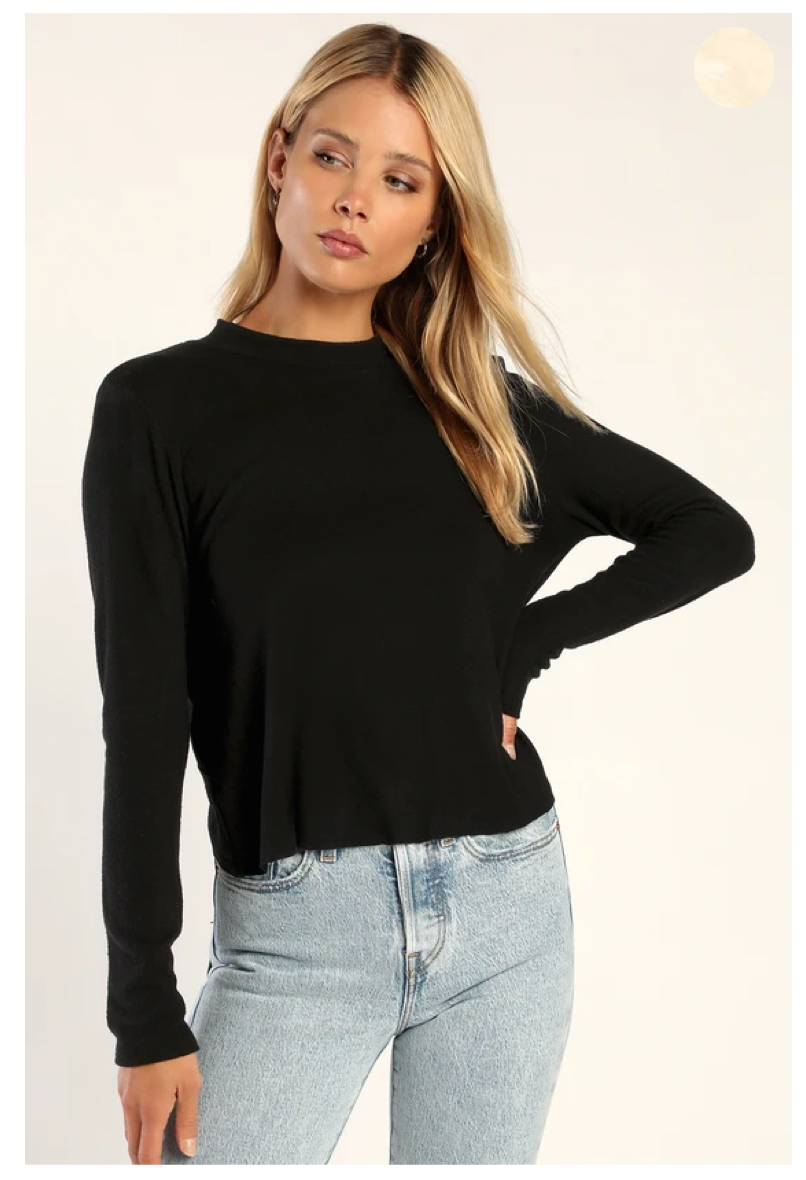 Muestra tu lado más dulce con la camiseta de manga larga negra Sweet Side de Lulus. El tejido de punto ultra suave da forma a esta camiseta que tiene un escote redondeado, mangas largas y un corpiño relajado. Detalle de costuras, un corte grande y un dobladillo recortado acentúan la espalda. ¡Combínalo con jeans y botas para una apariencia perfecta para la transición al otoño!