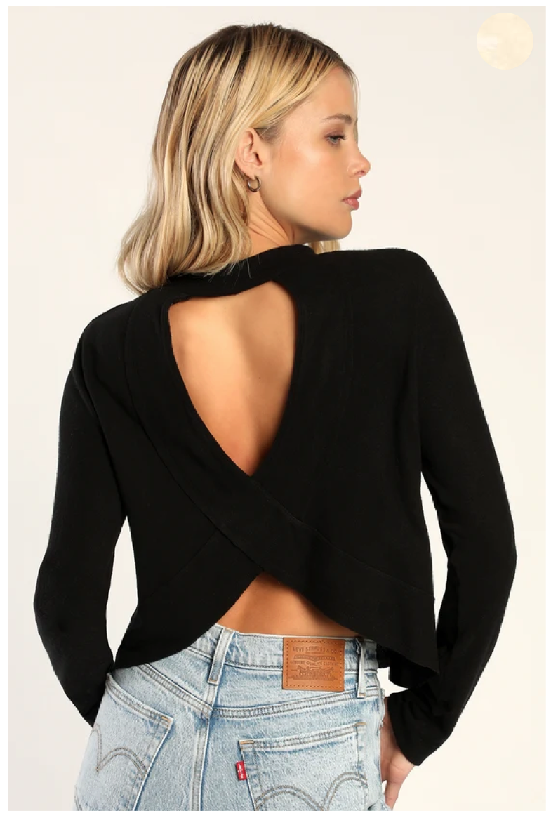 EXCLUSIVO DE LULUS! Top de manga larga con recorte de punto negro de Sweet Side