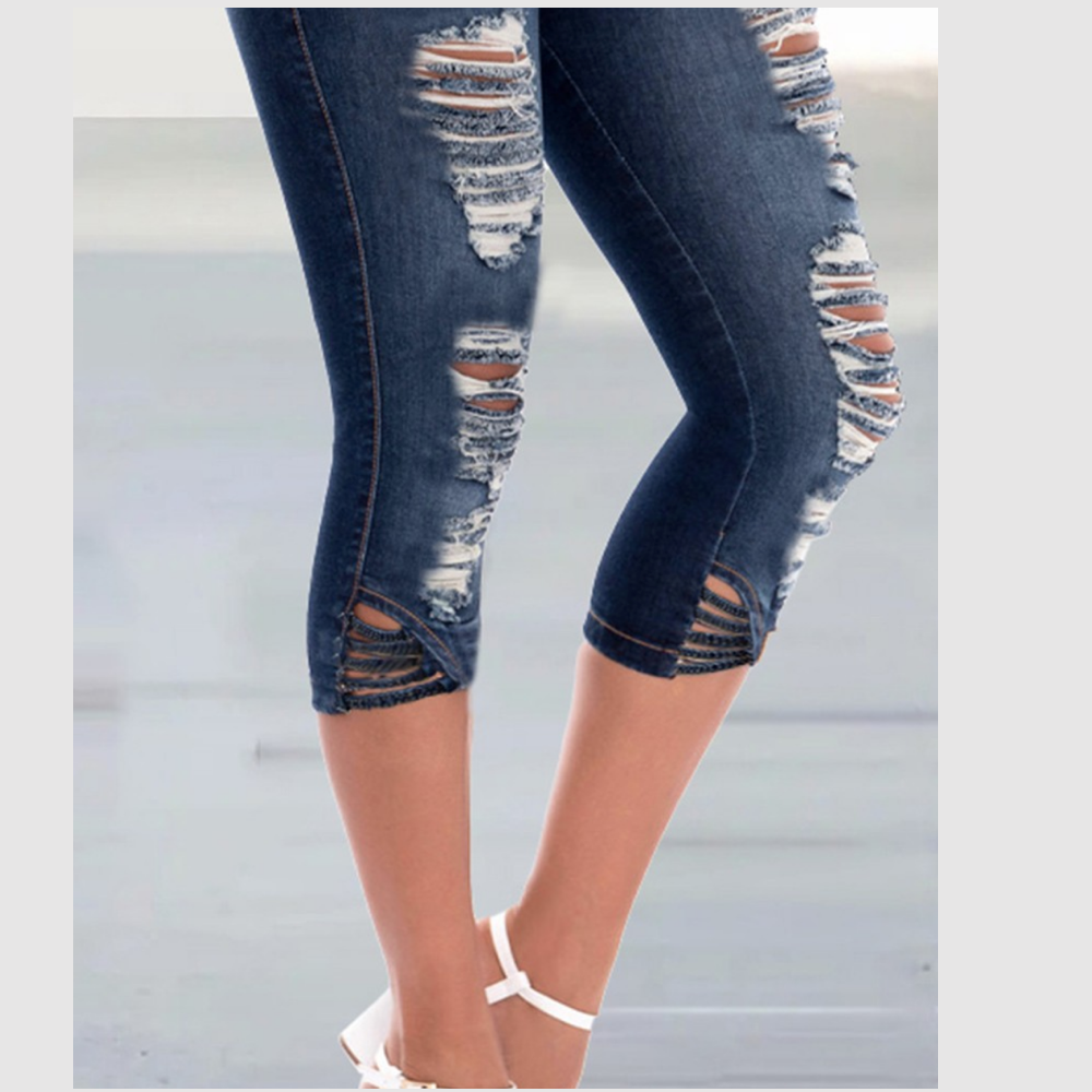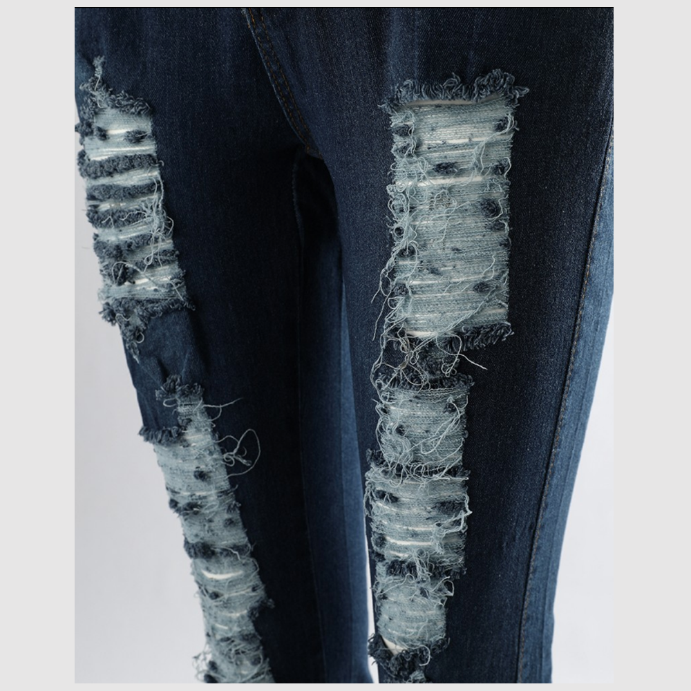 Jeans rasgados con cremallera y cintura alta con botones y cremallera