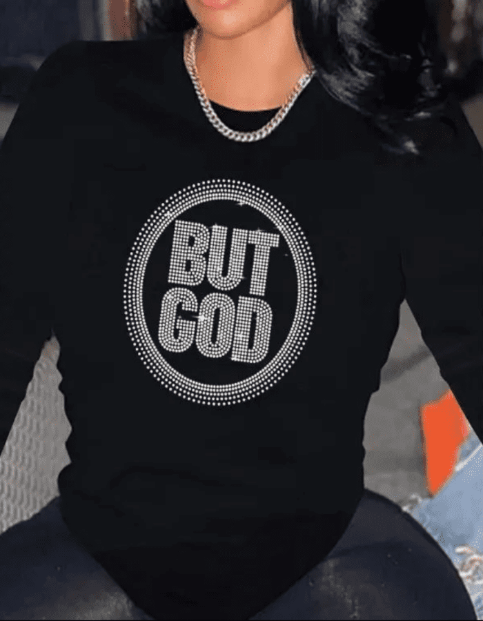 Sueter casual de manga larga con diseño de letras de diamantes de imitación Descripción del producto Estilo: Básico, Casual Tipo: Camiseta Material: Poliéster