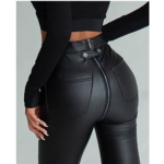 - ✨ Material: los pantalones de cuero con cremallera trasera para mujer están hechos de cuero PU de alta calidad