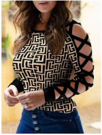 Top con estampado geométrico entrecruzado y hombros descubiertos para mujer, ropa informal que combina con todo