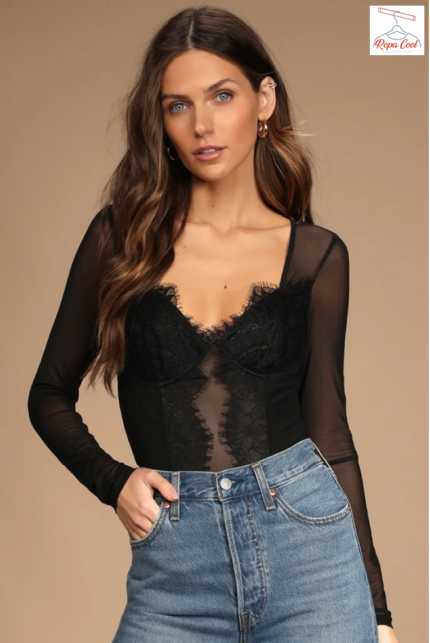 Body de manga larga de encaje de malla Stay Sultry ¡EXCLUSIVO DE LULUS!