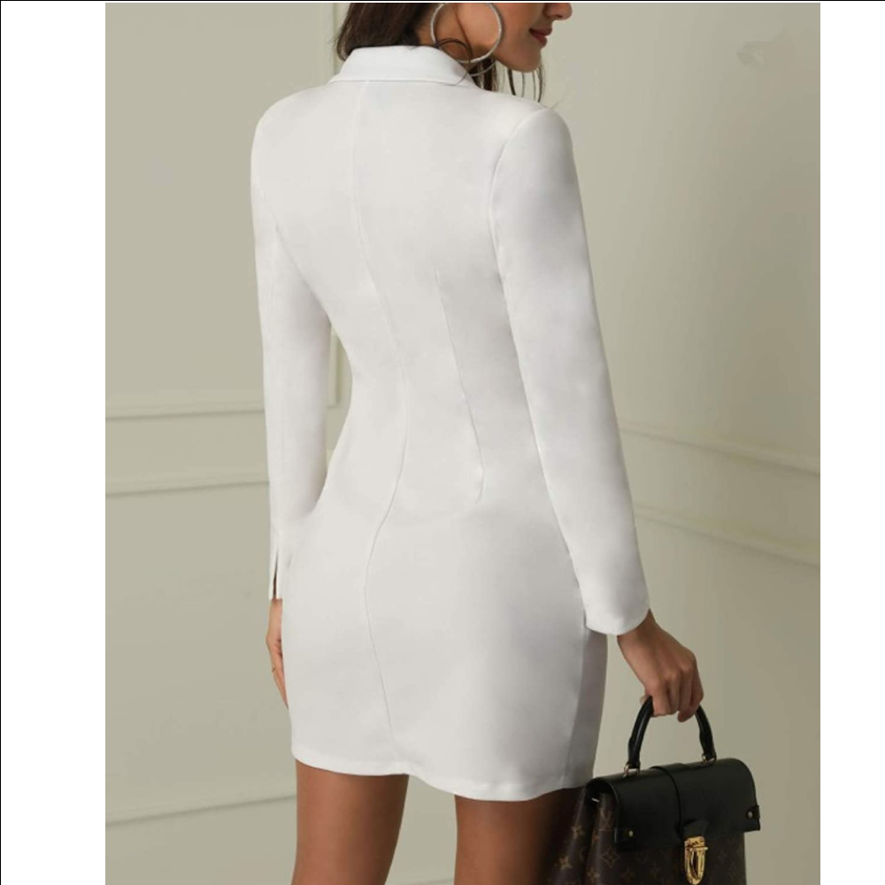 Vestido de mujer con doble botonadura, cuello de solapa, elegante, manga larga, OL Blazer, mini vestido